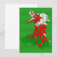 Het ontwerp van een Typografisch kalligram van een kaart van Wales gemaakt uit de woorden 'Home of Rugby', en een coole, grove look Welsh vlag in de woorden.