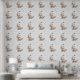 Repeated pattern of a cartoon baby bear asleep on the crest of the moon holding a toy plane surrounded by silver stars.