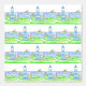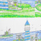Handgetekende denkbeeldige vuurtoren in blauw behang
