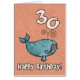Fijne verjaardagswalvis - 30 jaar oud Cute humpback whale op een leeftijdspecifieke wenskaart voor de geboorte. Binnenkant tekst: "Hoop dat je een walvis van een tijd hebt!"