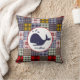 Een kussen met een afbeelding van een walvis boven een madras-vlakke achtergrond. Personaliseer met naam.