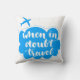 In twijfel reizen. Motivatie citaat op blauwe wolkenachtergrond met vliegtuig, borsteltypografie voor poster, t-shirt of kaart. Vectorkunst voor kalligrafie. | Bigstock® - Alle rechten voorbehouden.
