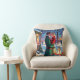 Dit is een feestelijk werpkussen, versierd met een modern kerstillustratieontwerp, met een verliefd paar in de kersttijd