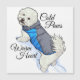 The design depicts a bichon in the snow with a warm jacket, heart and message.