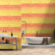 Verhelder uw ruimte met een fel warm sinaasappel en een vrolijk geel abstract zonnepatroon. Dit is een patroon dat waarschijnlijk het beste werkt voor een kleine ruimte. Het zal zeer duidelijke strepen creëer wanneer herhaald over een grote ruimte, zoals je kunt zien op de foto's. U kunt wat bredere strepen creëer door een tweede rol te plaatsen die de donkerdere kleuren met donkerdere kleuren en lichtere kleuren lijn met lichtere kleuren, of het snijden van het patroon bij de herhaling en het donkerder met donkerder en lichter met lichter. Het ontwerp is gemaakt van een originele foto van een zonsondergang genomen door de ontwerper. Beschrijving van het ontwerp: Het patroon is een donkere perzik aan de bovenkant, die zich naar een middelgele kleur beweegt. Er zijn een paar horizontale lijnen die het patroon opbreken. Over het algemeen is het patroon verdrietig, wat betekent dat er inconsistente patronen van lichtere kleuren zijn, alsof iemand een penseel had gebruikt om wat van de verf af te doen.