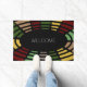 Moderne Warm Colorful Mosaic Design on Black Welcome doormat.