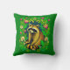 Kussen in een schattige wasbeer in het midden van een tuin, omlijst door felgroene bladeren, gele madeliefjes en roze tulpen. De gedurfde kleuren en speelse details geven het ontwerp een leuke, levendige sfeer, waarbij de charme van het bos wordt gemengd met een uitbarsting van tuinkleur.