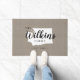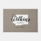 Moderne boerenboerengepersonaliseerde doormat met je familienaam in je staatskaart. Faux burlap canvastextuurachtergrond. Klik op Aanpassen om uw eigen tekst en afbeeldingen toe te voegen en een uniek ontwerp te creëer!
