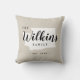 Moderne boerderij gooit kussen gepersonaliseerd met je familienaam op je staatskaart. Faux burlap canvas texture background (let er op dat kussentjes niet van materiaal zijn gemaakt om de schoot te leggen). Klik de Customize knoop van het om uw eigen tekst toe te voegen en uit al onze kussenstijlen te selecteren om uw eigen unieke één van een soort ontwerp te creëer!