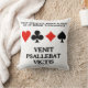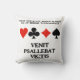 Als je een dubbele bridgespeler bent die op brugtoernooien speelt, zul je genieten van dit kussen met de vier kaartpakken en de Latijnse zin voor "Kwam, Gespeeld, Overwonnen": "Venit Psallebat Victis". Compleet gezegde zegt het al: "Wat Duplicate Bridge Players doen bij Bridge Tournaments - Venit Psallebat Victis".