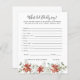 Deze baby shower gamekaart is voorzien van mooie zachte winterfloralen van de waterverf in tinten rood en wit, die zijn uitgebalanceerd met een zachte groen, waardoor het een warm en luchtachtig palet wordt. Verander achtergrondkleur of voeg grafiek toe om uw douchethema aan te passen. Neem contact met mij op voor een aangepaste bestelling. Natuurlijk is het niet nodig dat je spelletjes speelt op het baby shower, maar denk er eens over na: je gaat een groep van alle leeftijden hebben, en de meeste gasten hebben elkaar waarschijnlijk nooit ontmoet voor het feest. Het mengen in een paar van deze klassieke baby showers spellen is een perfecte manier om het ijs te breken. Deze professioneel ontworpen kaarten zijn snel aanpasbaar. Voeg uw douanetekst aan dit ontwerp toe door de "Edit this design sjabloon"vakjes op de rechterkant van het punt te gebruiken, of blauwe "pas het"knoop aan om de tekst te schikken, de doopvonten en de kleuren te veranderen en extra informatie of afbeeldingen aan dit ontwerp ook toe te voegen. Klik op "Verder aanpassen" om de volledige bewerkingsopties te openen. Als je coördinerende objecten nodig hebt (dank je kaarten, enz.), kun je contact met me opnemen voor een aangepaste bestelling. ****Voor aangepaste aanvragen heb je mijn hulp nodig. Plaats deze koopwaar niet in je kar. Stuur me in plaats daarvan een e-mail naar lauralise@iyhtvdesigns.com Een link naar je koopwaar wordt naar je gestuurd zodra het object beschikbaar is. U kunt die link gebruiken om uw bestelling te plaatsen. Gelieve maximaal 48 uur toe te staan.
