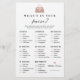 Leuk en stijlvol wat zit er in je handtas bruidsdouche spelkaart. Leuk spel om te spelen op je bruidsdouche feest. Modern en minimalistisch ontwerp met een leuke kleine roze hartvormige handtas / tas met punten variërend van 1 punt tot 100 punten. De spelkaart kan worden aangepast met je eigen puntensysteem en itemlijsten.