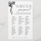 Equal parts chic en vermakelijk, What’s In Your Purse? is een heerlijke aanvulling op elk vrijgezellenfeest, verloving of meisjesbijeenkomst. Met zijn gepolijste ontwerp met een verfijnde illustratie van de zwarte strik, transformeert dit spel de dagelijkse benodigdheden van de handtas in een leuke en luchtige uitdaging. Gasten zullen dol zijn op het blootleggen van de onverwachte schatten die verborgen zijn in hun portemonnee, waarbij ze punten verdienen voor alles, van praktisch tot uiterst verrassend. Ontworpen voor een verhoogde evenementenervaring, mengt dit spel zich naadloos in elk vrijgezellenfeest thema, van tijdloze elegantie tot modern minimalisme. Of het nu wordt gebruikt als ijsbreker of als een levendige aanvulling op een feestelijke middag, het garandeert gelach en gedeelde momenten. Voor bijpassende design, op maat gemaakte aanpassingen of alternatieve tinten, is de designer verheugd om uw visie tot leven te brengen. Copyright Anastasia Surridge, alle rechten voorbehouden.