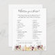 Deze baby shower spelkaart is voorzien van prachtige pompoenen & floralen met zachte waterverf in tinten van wazige roze en witte tinten die zijn uitgebalanceerd met zoet oranje en onbeschoft paars, waardoor het een warm en luchtachtig palet wordt. Verander achtergrondkleur of voeg grafiek toe om uw douchethema aan te passen. Neem contact met mij op voor een aangepaste bestelling. Natuurlijk is het niet nodig dat je spelletjes speelt op het baby shower, maar denk er eens over na: je gaat een groep van alle leeftijden hebben, en de meeste gasten hebben elkaar waarschijnlijk nooit ontmoet voor het feest. Het mengen in een paar van deze klassieke baby showers spellen is een perfecte manier om het ijs te breken. Deze professioneel ontworpen kaarten zijn snel aanpasbaar. Voeg uw douanetekst aan dit ontwerp toe door de "Edit this design sjabloon"vakjes op de rechterkant van het punt te gebruiken, of blauwe "pas het"knoop aan om de tekst te schikken, de doopvonten en de kleuren te veranderen en extra informatie of afbeeldingen aan dit ontwerp ook toe te voegen. Klik op "Verder aanpassen" om de volledige bewerkingsopties te openen. Als je coördinerende objecten nodig hebt (dank je kaarten, enz.), kun je contact met me opnemen voor een aangepaste bestelling. ****Voor aangepaste aanvragen heb je mijn hulp nodig. Plaats deze koopwaar niet in je kar. Stuur me in plaats daarvan een e-mail naar lauralise@iyhtvdesigns.com Een link naar je koopwaar wordt naar je gestuurd zodra het object beschikbaar is. U kunt die link gebruiken om uw bestelling te plaatsen. Laat maximaal 48 uur staan.