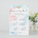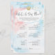 Dubbelzijdig baby shower spel. Een kant is "Wat zit er in je telefoon?" en de achterkant is "Wat zit er in je tas?" Deze baby shower gamekaart is voorzien van een modern script op de roze en blauwe achtergrond van de waterverf, ideaal voor een verrassing! Prins of prinses? Gebruik deze kaart voor je trendy gender-openbaring.