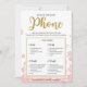 Dit moderne bloemige "Wat zit er op je telefoon" heeft een roze bloemige achtergrond met gouden glittersplashes. De tekst is geschreven in een mix van een speels kalligrafielettertype en een modern schreefloos lettertype, deze What's on Your Phone kaart is gepersonaliseerd met de naam van de aanstaande bruid en de datum van de bruidschouw.