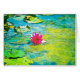 Een fuchsia-waterlelaar met kalkgroen foliage in turkooiswater.
