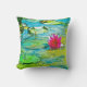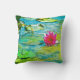 Een fuchsia-waterlelaar met kalkgroen foliage in turkooiswater.