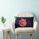 Pillow met een hotroze waterLily op een zwarte achtergrond en een kleine hoeveelheid groen en geel. Heldere en vrolijke toevoeging aan uw huis. Als je deze kussen moet kopen, bedankt zo veel.