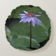 Het afbeelding op dit Ronde Kussen is een originele foto van MaeFlowers van een waterlelie, een bloeiende bloem te midden van de leliepads die op het water zweven. De bloem is een mooie lavendelblauwe kleur, die zich onderscheidt van de donkergroene, ronde lilypads.