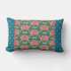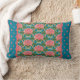 Een Lumbar Pillow of Cushion, met een mix van 'n' gelijke patroon van roze waterlilies en blauwe libellen, van een handbeschilderd papieren collage door Judy Adamson. Uitstekend geschenk voor iemand met een verjaardag van juli; onderdeel van het collectie van Posh & Painterly 'Lily Pond'.
