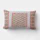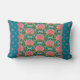 Een Lumbar Pillow of Cushion, met een mix van 'n' gelijke patroon van roze waterlilies en blauwe libellen, van een handbeschilderd papieren collage door Judy Adamson. Uitstekend geschenk voor iemand met een verjaardag van juli; onderdeel van het collectie van Posh & Painterly 'Lily Pond'.