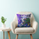 Waterlilies Blue is een combinatie van fotografie en digitale kunst. Pond fotografie van waterleliebladeren, hoge pieken van irisbladeren en water. Het digitale deel is de verbetering van de kleur. De kleur is blauw/paars en tint de bladeren en het gras. Het patroon bevindt zich aan beide zijden van de kussen.