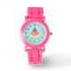 Dit horloge kenmerkt een heerlijke illustratie van de cartoon van een watermelonplak op een blauwe achtergrondkleur.