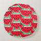 This throw pillow is shown in a cute watermelon print on a white color background.