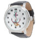 Een cool maritiem ontwerp met een roze en groen anker met een touw en zeeschelp, gemaakt met waterverven.