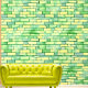 Ontworpen met elegante bakstenen patronen in groene gele kleuren! Groot voor hoofdslaapkamerdecor, baby kwekerij, kinder ruimten, woonkamers, keuken en badkamerdecor! U kunt elke achtergrondkleur kiezen voor een andere look!