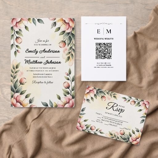 Waterverf Bloemontwerper bruiloft uitnodiging