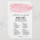 Deze waterverf "wat zit er in je telefoon"-spel is perfect voor een romantisch en aardig modern vrijgezellenfeest of baby shower. Het luxueuze feminieontwerp is voorzien van een lichtroze textuur met een spatje faux goudglitter stof en een elegant calligrafiescript font. Opmerking: dit ontwerp bevat geen echte goudglitter. Het is een afbeelding van hoge kwaliteit gemaakt om eruit te zien als gouden glans.