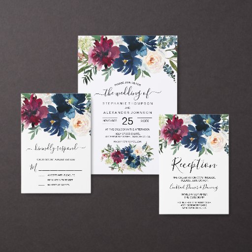 Burgundy Navy Flowers Wedding CollectionOntworpen door Ioana Hraball
