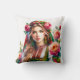 Waterverf Bulgaarse Rozen & Volksvrouw Etnisch Kussen