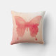 Een enkele, grote, waterverf vlinder in tinten van diep tot zacht koraal op een pastel perzik / pastel koraal gradiënt achtergrond gooien kussen