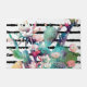 Dit schattige, elegante collectie cacti, succulenten, en bloemen op een zwarte borstelstrook strepen het achtergrondontwerp, met een , droomig gevoel dat de verfkunst van de waterverf perfect is voor het decor van de vrouw, voor festiviteiten of voor speciale evenementen. Deze witte, girale, boho zomercactus botanische kunst is gevuld met munt, roze, blozen, oranje, paars, groen, blauw, blauwgroen en witte levendige kleuren.