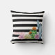Waterverf Cactus, Succulent Black White Stripes Kussen
