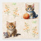 Waterverf kitten met een klein muisje en een met een bolletje garen met gele bloemetjes op getextureerde crème achtergrond voor meisjes kamer.