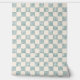 Geometrisch checker ontwerp met zee schuimgroen en crème geweven waterverf vierkanten. Rustig en neutraal voor een gevoel van licht en ruimte.