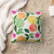 Waterverf geïnspireerd patroon met illustraties van roze bloemen, sinaasappel, citroen, limoen en grapefruitcitrus met botanische bladeren.