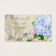 Waterverf Engelse tuin, blauw n roze hydrangeas Visitekaartje