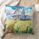 Deze gooi kussen bevat een waterverf afbeelding van een witte boerderij omringd door een maïsveld. Een mooie blauwe hemel hangt boven. Het is de perfecte kussen voor iedereen die de simplistische schoonheid van het leven van het boerderij waardeert.