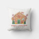 vrolijk kerstfeest | Dit aanpasbare kerstkussen voegt een feestelijk accent toe aan uw kamer. Het beschikt over een aquarel feestelijke peperkoekhuis met snoepstokken, pepermunt en snoepjes accent. Personaliseer door uw gegevens toe te voegen. Dit aangepaste kerstkussen is perfect als een persoonlijk geschenk. Overeenkomende objecten zijn beschikbaar.