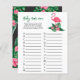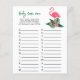 Het baby shower uitnodigingsontwerp heeft roze flamingo met weelderige groene bladschijfjes en tropische hibiscusbloemen. "Aloha Baby". Een tropisch bloemenpatroon met zwarte achtergrondkleur kleedt zich op de achterkant van de kaart.