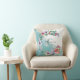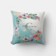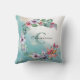 Personaliseer dit vierkante gooi kussen en maak direct elke kamer van jou! Prachtig waterverf bloemontwerp met je initiaal en naam in het midden op een turquoise blauw-witte achtergrond met glitterachtige accenten.