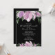 Deze elegante, moderne floral bridal doucheuitnodigingen zijn voorzien van een waterverf van paarse en witte magnolia bloesems en bladeren op een zwarte achtergrond. OBJECTEN AANPASSEN in onze winkel.