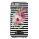 Een kleurrijke waterverf florale schikking zit op een zwarte en bleke grijze gestreepte achtergrond. De jouw namen van het tussenvoegsel, monogram of andere tekst in plaats van de steekproefnaam die voor een geval van de douanefoon wordt getoond.