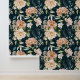 Peach & blush pioenrozen en hortensia bloemen op een zwarte achtergrond creëer deze elegante en verfijnde peel & stick wallpaper. De perfecte afdekking om uw muren op te warmen in elke kamer van uw keuze.