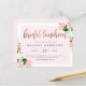 Viel je vrijgezellenfeest met een lunchpauze op onze lenteforaal uitnodiging. Met bloemen met een stomp roze waterverf aan de linker- en rechterkant, met een goudkalligrafie van het roos van de kruipers voor de woorden "bridal luncheon" tegen een pastelachtergrond. Als onderdeel van de begrotingsselectie hier op Zazzle, komen deze uitnodigingen niet met enveloppen en passen ze ook niet goed in een standaard envelop. De dichtstbijzijnde grootte is A6, maar er zal een gat van ongeveer een halve inch zijn. Als u het gebrek aan snugheid niet erg vindt, kunt u zulke breed beschikbare A6-enveloppen gebruiken. Anders, kan dit ontwerp naar een standaard 5x7 formaat (dat met enveloppen komt) worden overgebracht gebruikend het hulpmiddel van de ontwerpoverdracht. Als ruwe gids, vanaf het ogenblik van het schrijven, zouden 100 begrotingsuitnodigingen (met inbegrip van een volumekorting) rond $39 kosten terwijl 100 standaard 5x7 uitnodigingen met inbegrip van enveloppen ongeveer $135 zouden kosten. Uw kilometerstand kan variëren afhankelijk van de promotiecodes van Zazzle, de verkoop ter plaatse of prijswijzigingen.